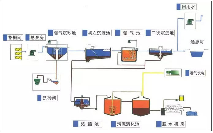 污水處理廠(chǎng)典型工藝流程圖